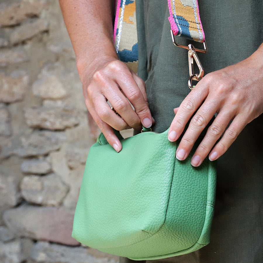 Add POM Pea Green Vegan Leather Bag with Camo Strap to the cart