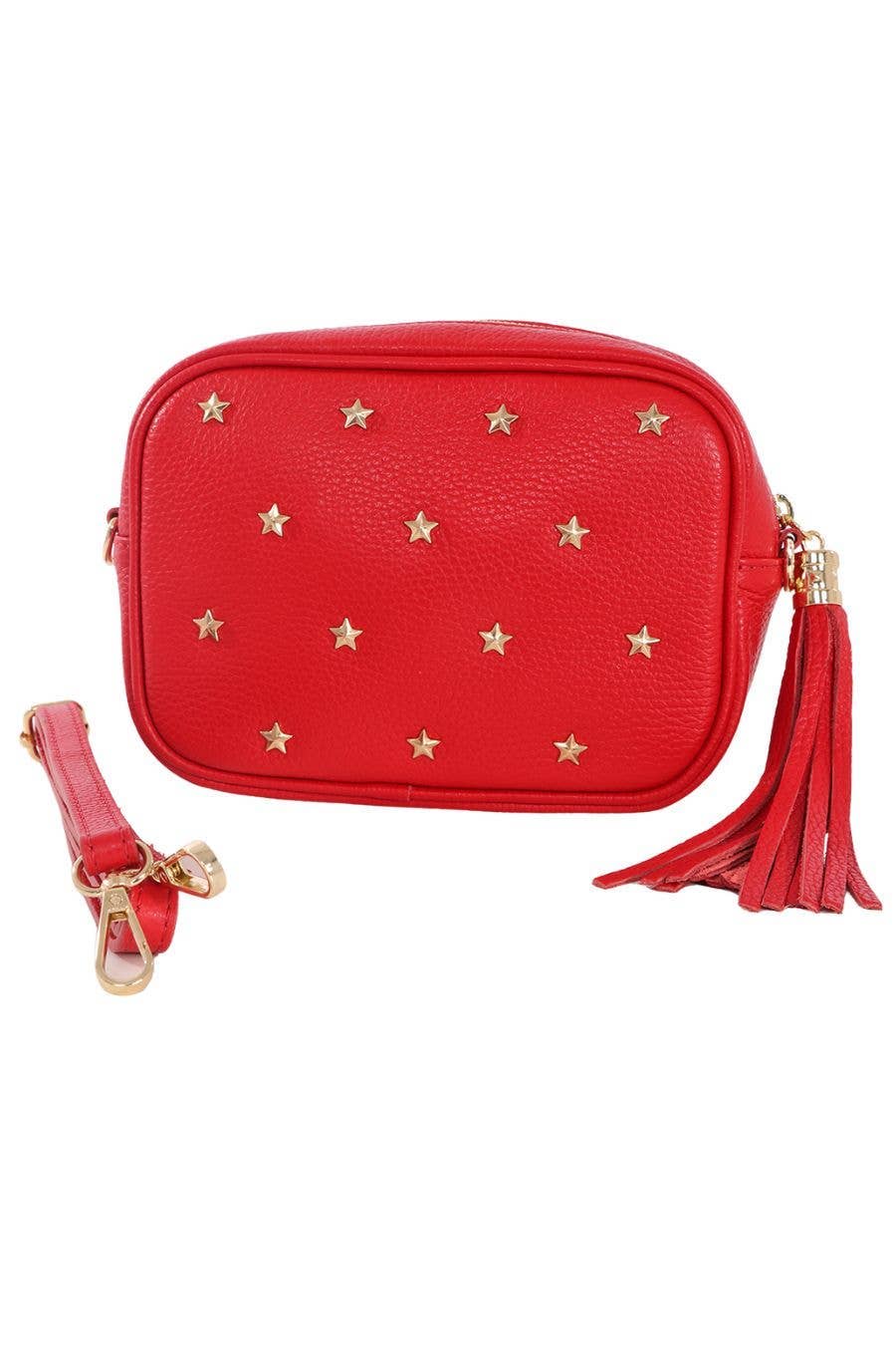Add Eloise Red Italian Leather Star Studded Crossbody Bag to the cart