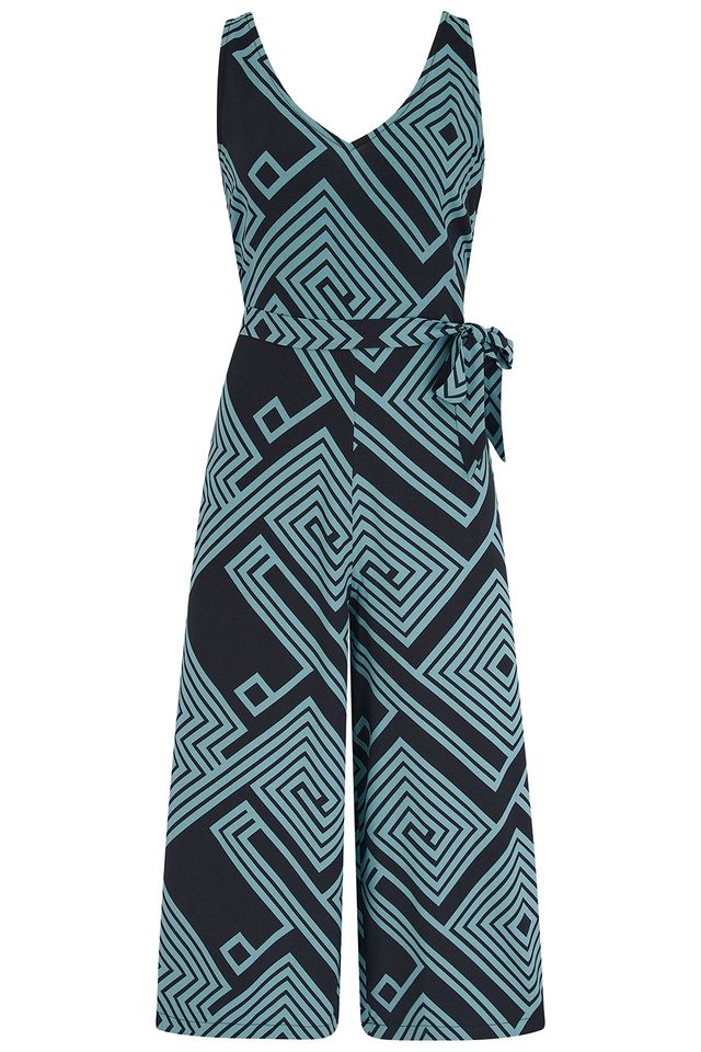 Sugarhill Brighton Lamiah Black Green Geometric Lines Jumpsuit