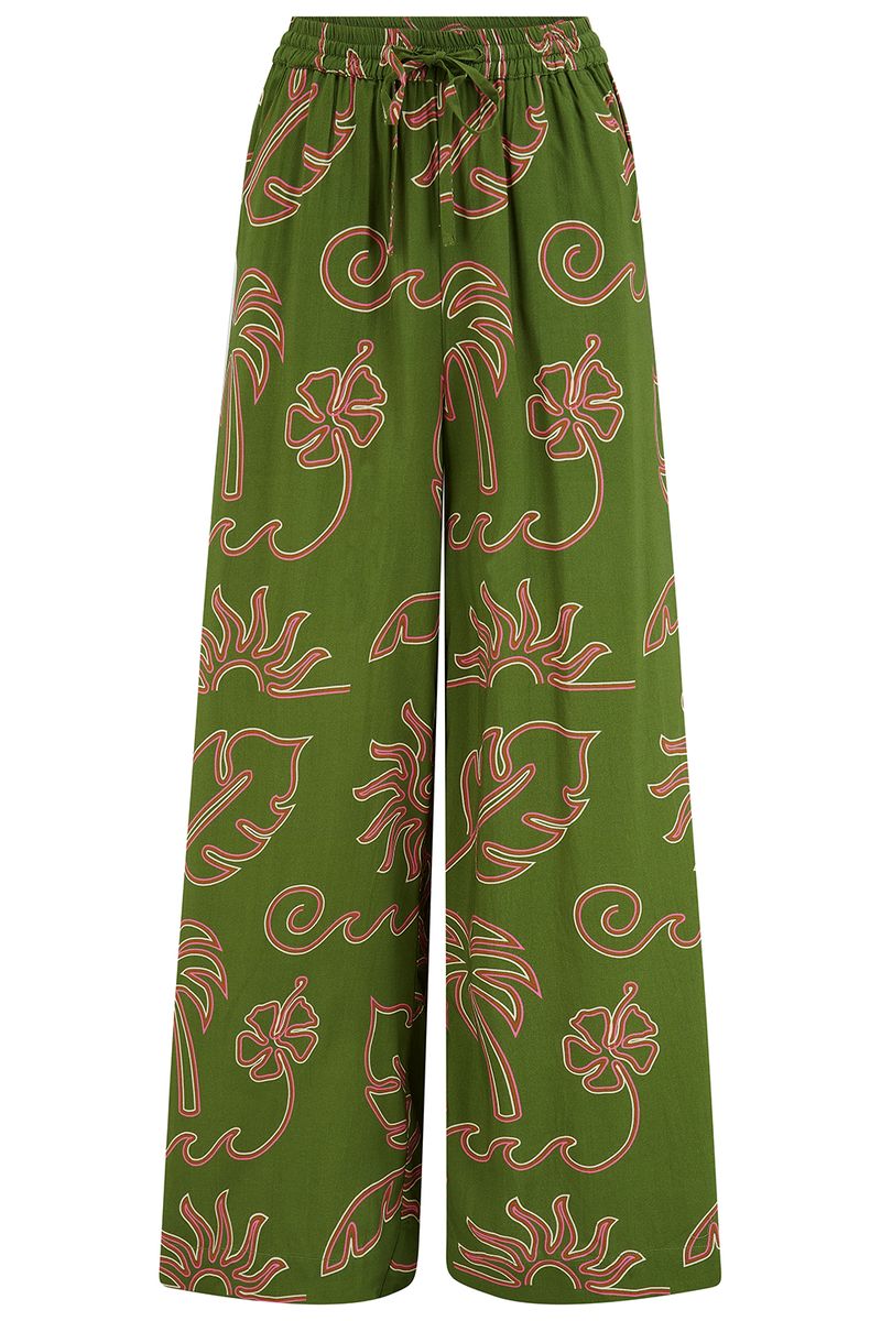 Sugarhill Brighton Trinny Khaki Tropical line Drawing Wide Leg trousers